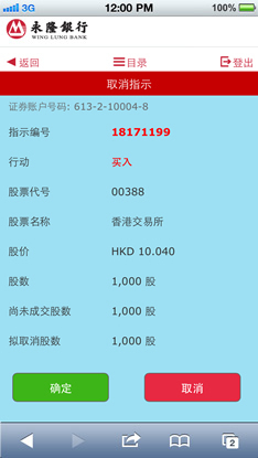 按「取消指示」后,可于此页取消您所选的买卖指示。