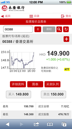 按「报价」后,此页面将显示所查询的最新股票资讯。