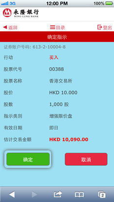 请核实所有指示资料。如所有资料准确无误后,请按「确定」。如需更改资料,请按「取消」。