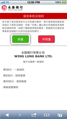 首次登入手机银行的客户将被转往至「接受条款及细则」页面。