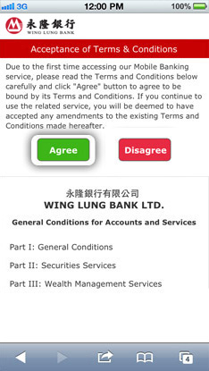 Please read the T&C carefully and press "Agree" in order to access Mobile Banking Services.