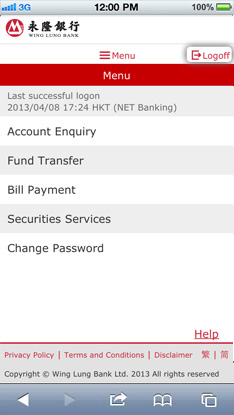 Logoff Mobile Banking