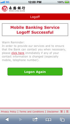 Logoff page will be shown if you have successfully logged off from our Mobile Banking.
