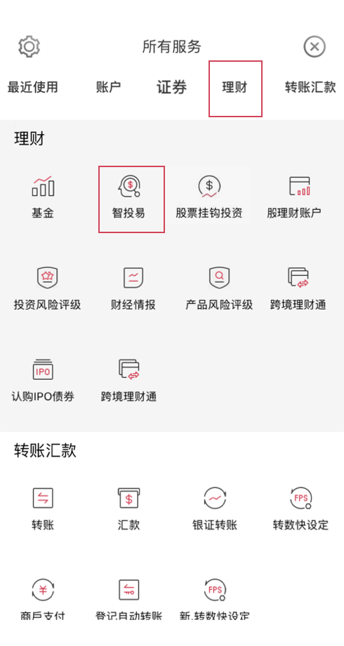 1. 打开「一点通」,点击「全部」 –「理财」 ,选择 「智投易」服务(「智投易」)。