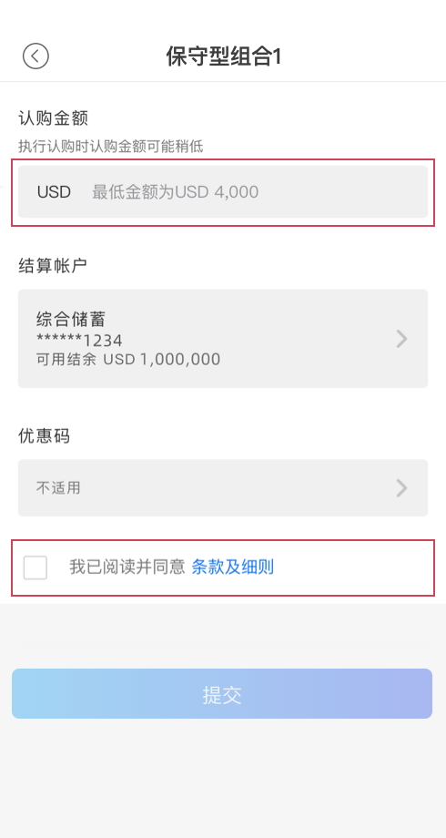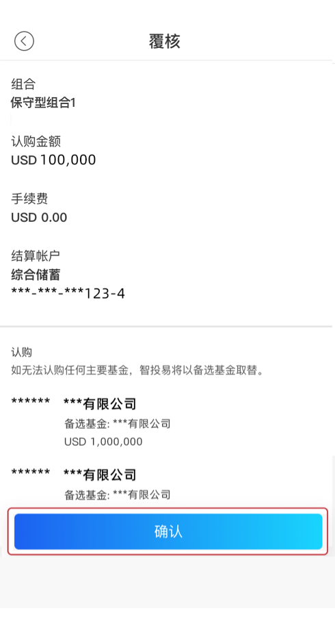 选择心水基金组合,输入认购金额及优惠码(如有)及选择结算账号,并在阅读和同意条款后确认复核资料,即可轻松完成交易。