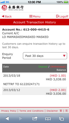 Once enquiry period is selected, transaction record will be shown.
