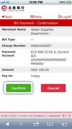 Please verify the payment details before confirmation. Press “Confirm” if the payment detail is correct or press “Cancel” to modify its detail.