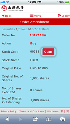 Also you can press "Quote" to check the latest stock info.