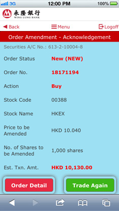 You can check the order detail or place an order again by pressing “Order Detail” and “Trade Again” respectively.