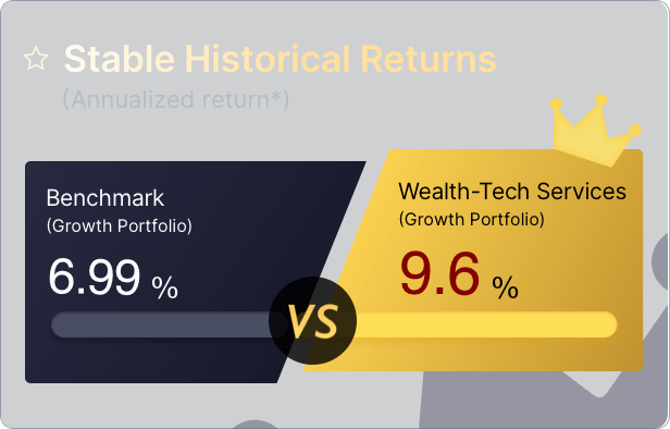 Everyone’s risk preferences and market views are different. Wealth-Tech Services considers each customer’s individual investment preferences such as geographic locations, industry sectors, and risk preference and etc., to formulate customized and personalized investment plan to fulfill different investment needs. Wealth-Tech Services will provide different tailored fund portfolios for each customer with different preferences.