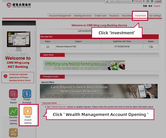 Click 'Wealth Management Account Opening' or 'Investment'