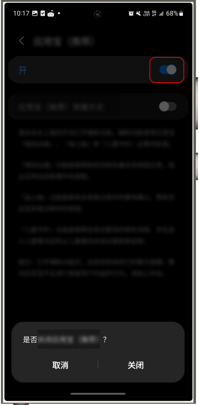 进入后关闭程式(将设定变成置灰),即可返回并正常启动招商永隆银行手机APP。