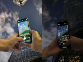 位於旺角招商永隆銀行中心之廣告射燈於「地球一小時2024」活動前及期間的情景。
