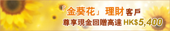 金葵花理財客戶 尊享現金回贈高達HK$5,400